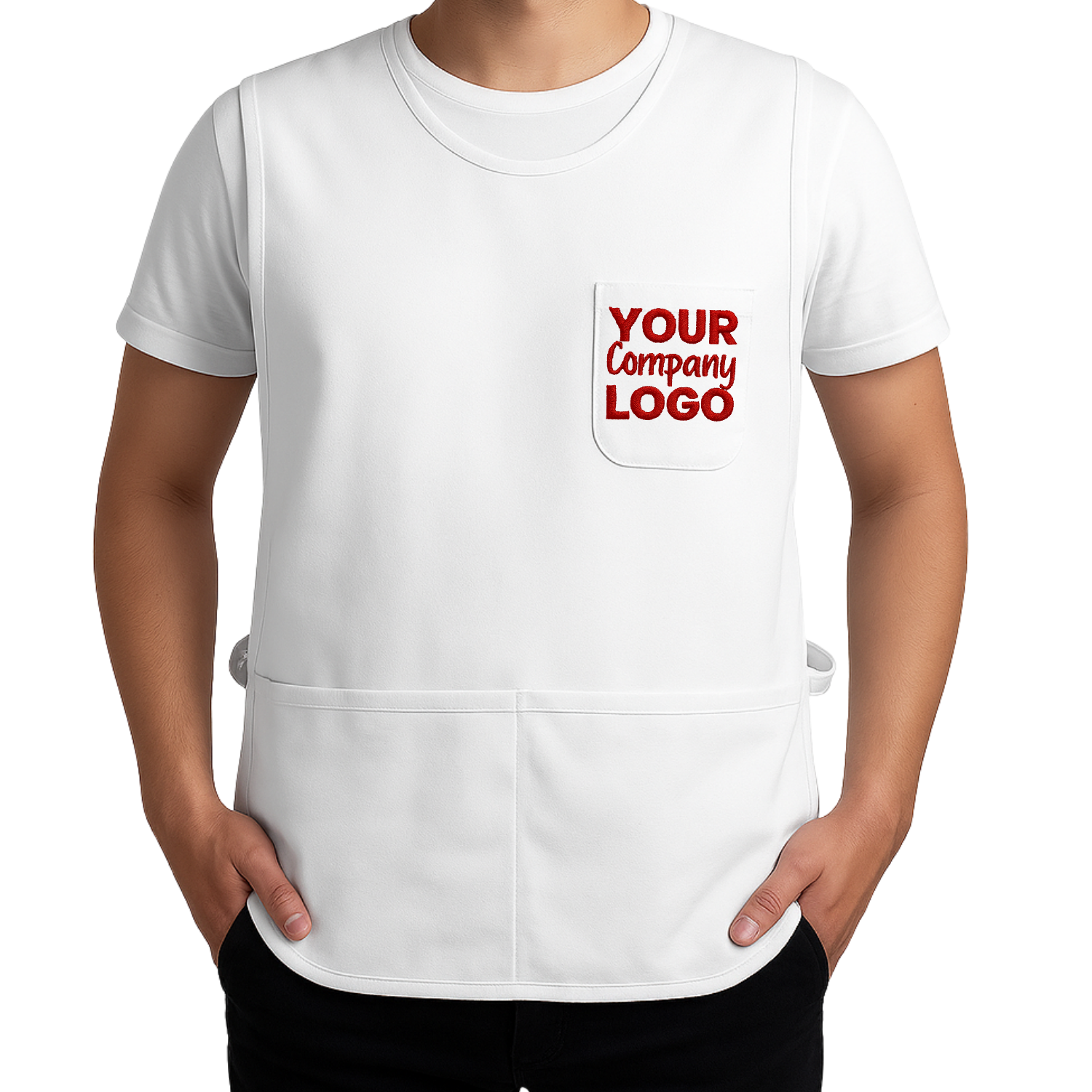 Professional embroidered vest apron, perfect for hospitality or personalized branding. Adjustable fit and durable fabric.
